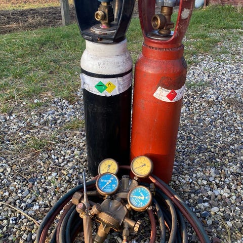 propan og ilt sæt, med Harris 980 brænder. En stor iltflaske med noget i kan også følge med