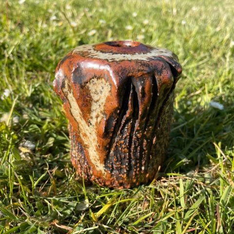 Flot motiv med lækker glasur i brune, beige, blå farvenuancer.