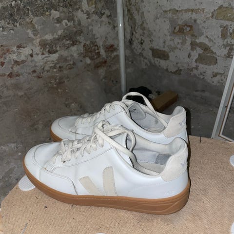 NY PRIS. Super fede Veja sneaks sælges. Unisex. Som nye. Hvide/pumpkin. Læder. Se også eng. beskrivelse under billeder. De er store i størrelsen, og derfor sælger jeg dem. Nypris 1115 kr. (€150