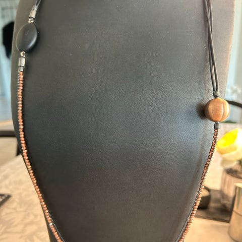 90 cm halskæde i gummi og sølv og meget fint pynt på kæden. Se billeder ny pris 1995 kr. kan have lidt mærker / ridser Kan sendes for 47 kr