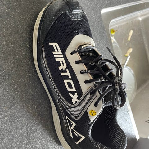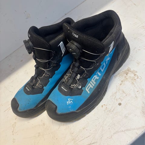 Sikkerhedssko fra Danske Airtox str 42, som har været brugt som reservekapacitet. De har brugsforening på overlæder og sål uden slid samt lukkemekanisme funger fint.