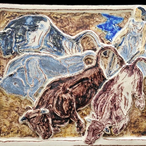 Keramik, Relief, Knapstrup, Her et herligt relief fra Knapstrup af to børn der leger.