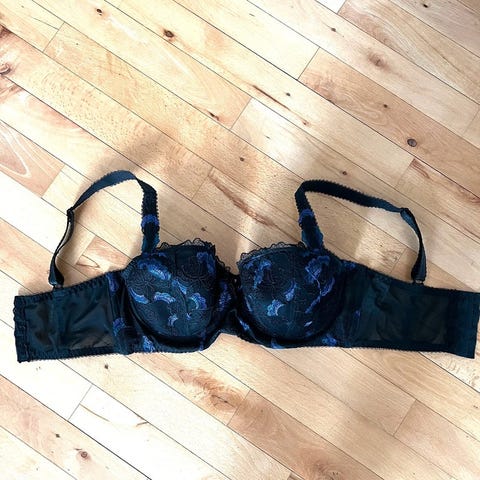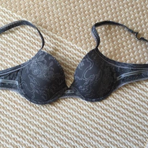 Femilet sort foret bøjlebh m broderi str 70 C.