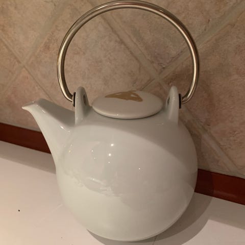 Når teen har trukket længe nok løftes beholderen med te blade blot op med den indbygget stang