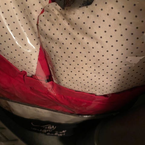 Selve posen har farven "Straw Green" og indvendig er den lys brun.