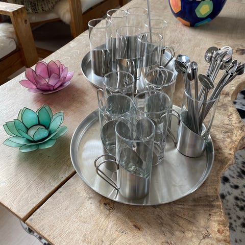 Foto 6-8 STORT flot og ubrugt sæt til Gløgg eller Irsk kaffe mm til 8 personer på bakke