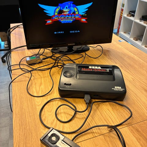 Denne spillekonsol kommer med spillet Sonic the Hedgehog indbygget, en controller, strømforsyning og et Nintendo RF video kabel.