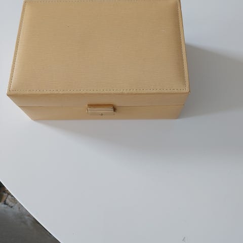 Tiger smykkeskrin i metal med påsatte sten. 14 cm