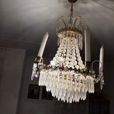 6 gyldne mini lampeskærme til lysekrone sælges sammen
