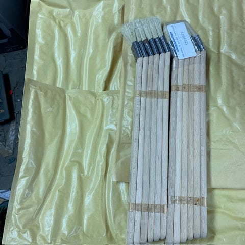 5 stk Spekter 632-50 rør/radiatorpensel , vinkel, 50 mm med sorte børster. Se mål på foto. Helt nye og ubrugte. Nypris 119 kr/stk hos et af de store byggemarkeder, i alt 595 kr. Køb til næsten 1/3 af prisen. Fotos viser 10 pensler, men du køber 5 (FEM) stk pensler.