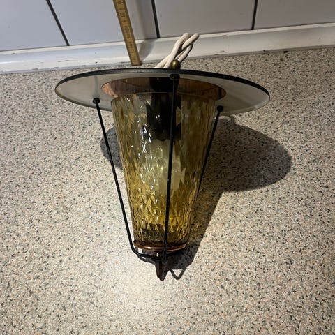 Lampe fra 50 erne i glas og messing og metal Diameter skærm27 cm højde 23 cm