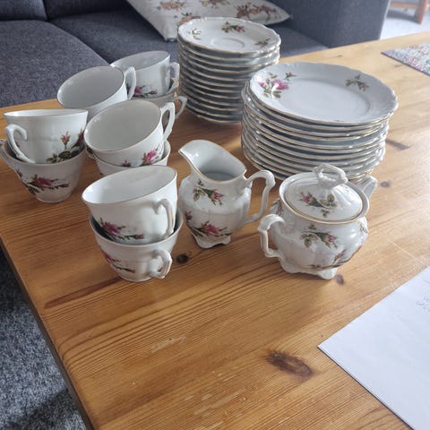 Der er 7 kopper, 8 underkopper og 5 desserttallerkener.