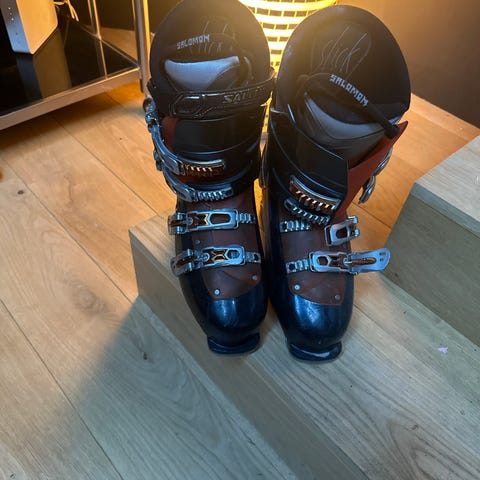 Der medfølger Rossignol (inverted overlap) støvler i str. 27.5 (svarer til omkring 43).