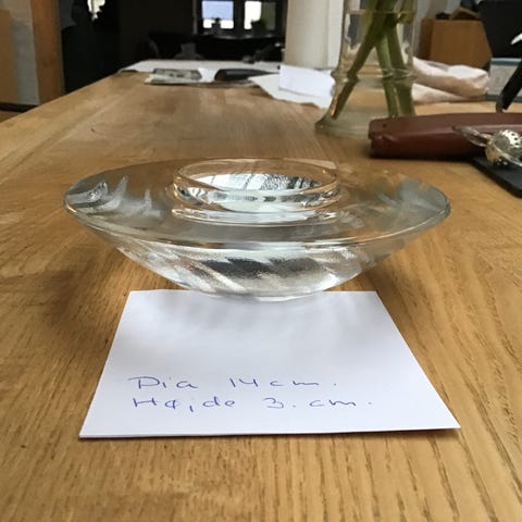 Holmegård / royal copenhagen glas fyrfadsstage sæt bestående af to klare glasstager med dekorative former. Stagerne er designet til at holde fyrfadslys og kan anvendes som dekorative elementer i hjemmet.