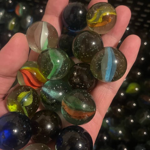 Et antal gamle/antikke marmorkugler som børn legede med i skolegården i gamle dage.