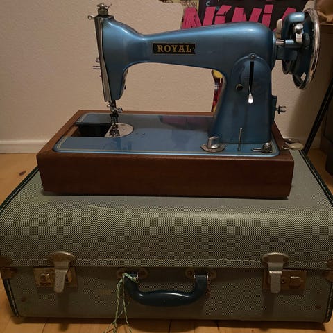 Flot antik hånddrevet cosmos symaskine. Syer stadig.