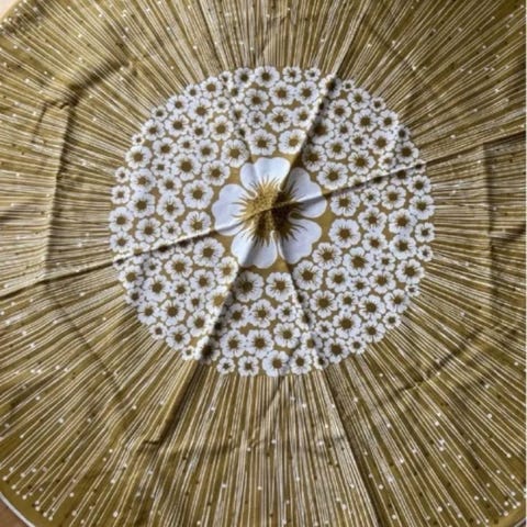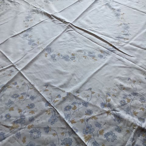 Runddug med blomster retro hvid og oliven, Rund Retro olivenfarvet dug næsten ny men af ældredato.