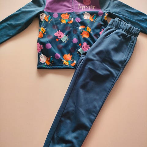 Joggingsæt / træningssæt fra Peppa Pig med Gurli Gris tema. Nypris 400 kr. Brugt begrænset. OBS på små mærker på bukserne.