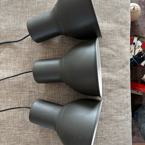 Loftlamper, sort metal, Ikea Hektar, 22cm diameter, fin stand. Ikea nypris 179kr, har 4 stk. Pris 75kr pr stk. Hentes FRB kan leveres kbhn, gentofte