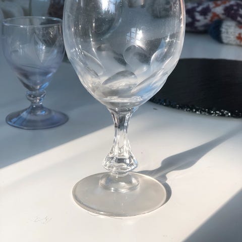 Smukke hedvinsglas med ravfarvet fod H. 8,5 cm