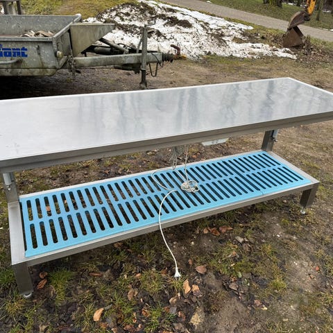 Rustfri bord med nedsænket vask med låg og stort afgangsrør