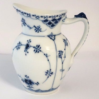 Royal Copenhagen , Musselmalet Halvblonde flødekande.