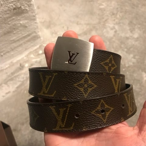 Bælte, Vintage bælte, Louis Vuitton, str. Se tekst, Lysebrun, Læder, God men brugt, Vintage bælte, købt for år tilbage. Bærer præg sf brug, der er afskalninger i overfladen og spændet har ridser. Måler 98,5 i fuld længde og 88,5 fra spænde til yderste hul. Er 1,5cm bredt.