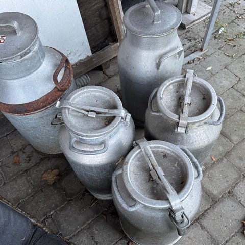 Har disse 3 gamle mælkespande uden låg. Kan bruges til planter eller anden pynt.