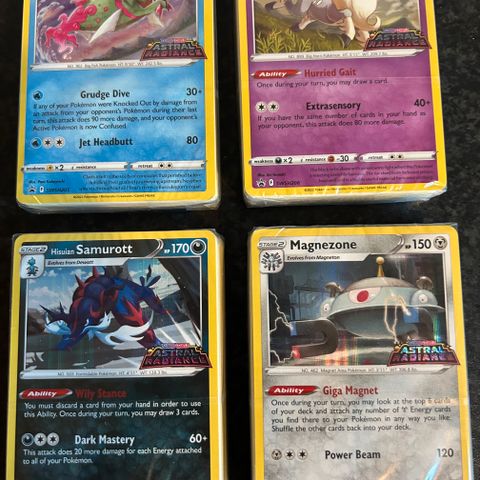 Astral radiance pokemon kort samling sælges samlet med mappe. Har en ide omkring pris, men vil gerne modtage bud over 1000 kr, alt under har ikke interesse.
