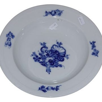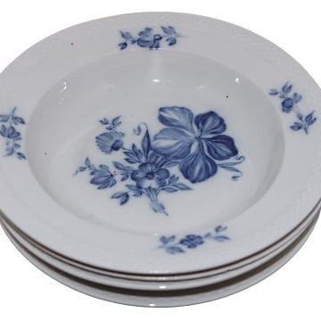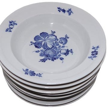Københavns fajancefabrik 8 dybe tallerkener dia 25,5 cm og dybde 4 cm dekoreret med Blå blomst 1910-1941,