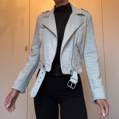 Flot (helt) sort bikerjakke i polyester med fede detaljer sælges. Brugt få gange. Den er virkelig blød og i lækker kvalitet.