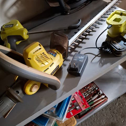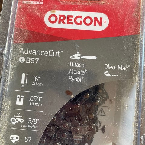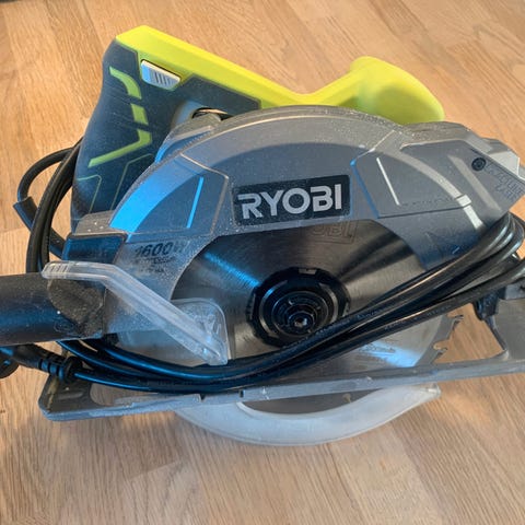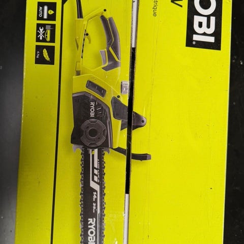 Ryobi motorsav. Den kunne starte og kører. Men den trænger til at blive renset og smurt.