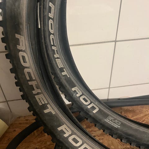 Sælger gode MTB-dæk Schwalbe Rocket Ron 29x2.35. Prøvekørt op til 100 km, top version. Årsag til salg: min oprindelige Maxxis.