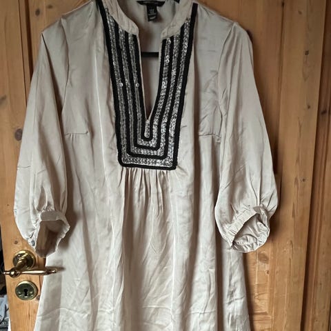 H&M cerise tunika med svagt sort broderi str 38. Matr 100% polyester