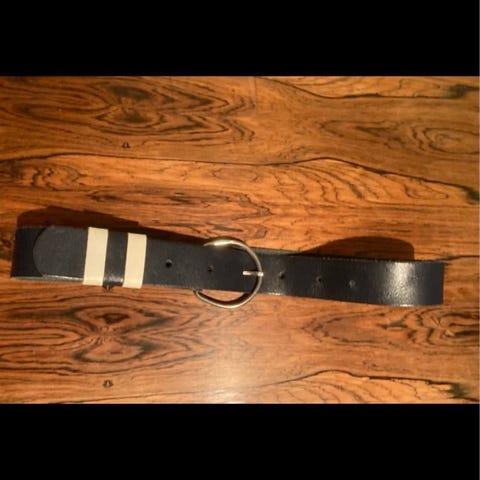 Bælte, Marineblåt elastikbælte fra 80’erne, 80er, str. Læs, Marineblåt elastikbælte med metal spænder fra 80’erne i fin stand