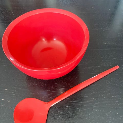 Andet, træ salatskål, stor lys træ salatskål med rösti hvidt salatbestik