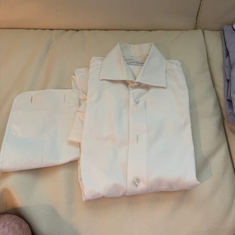Lilla stribet skjorte fra John Henric. Hvid krave og hvide manchetter, også kaldet for en winchester skjorte. Størrelse 37 slim fit. God kvalitets skjorte og brugt et par gange