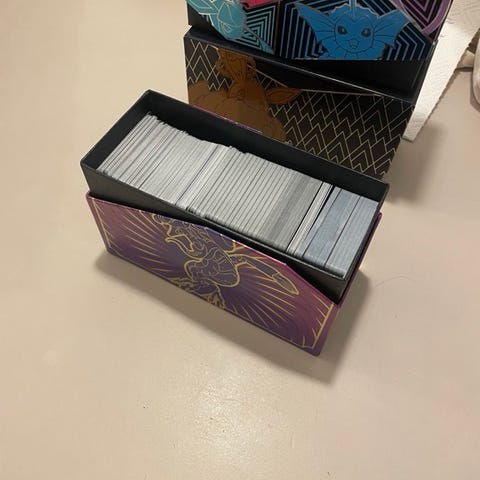 Jeg sælger +500 kort i denne æske, der er omkring 50 sjældne/glimmer kort i den. Alle kort står som nye #pokemon # pokemon kort