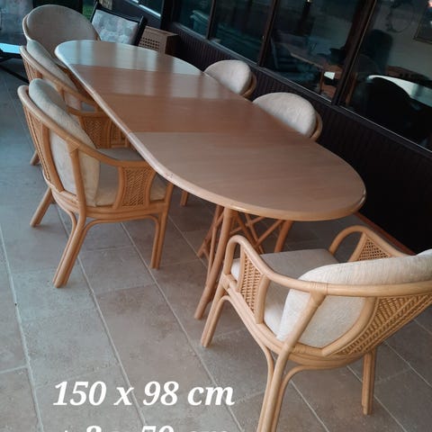 Egetræ massivt m/ udtræksplader (se mål på billederne) - tilhørende 6 stole kan også sælges uden stole.