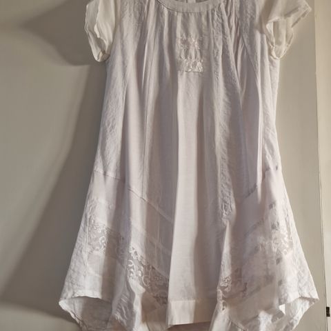 Med yndig og enkel hvid sommerkjole med hæklet indsats foroven