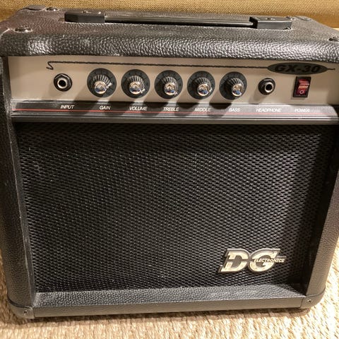 DG forstærker med en effekt på 10 watt, sort farve og kompakt design. Velegnet til øvelse og mindre optrædener.