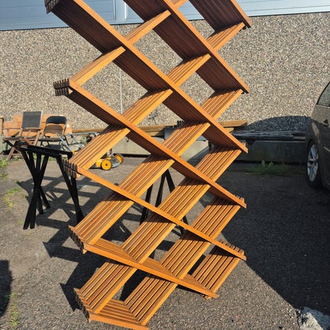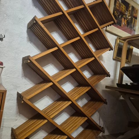 Tremmereol lamelreol tremme lamel reol af fyr træ vinreoler retro stor sætterkasse Fyrtræ Kop reol Vægreol Væghængt reol Væghylde