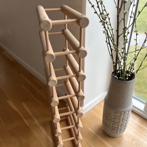 Vinreoler af massiv fyrretræ - kan bruges enkeltvis eller sættes ovenpå hinanden eller side om side. Kan både stå eller hænges op på væggen.