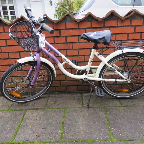 Pigecykel MUSTANG DAGMAR hjulstørrelse 20tommer stelstørrelse 35cm sadelhøjden kan indstilles til benlængde fra 60cm til 80cm målt fra lysken til fodballen stelnr WDB32342F med 3gear håndbremse foran og fodbremse bagpå årgang 2011 absolut fast pris kan ikke forhandles hvhskur