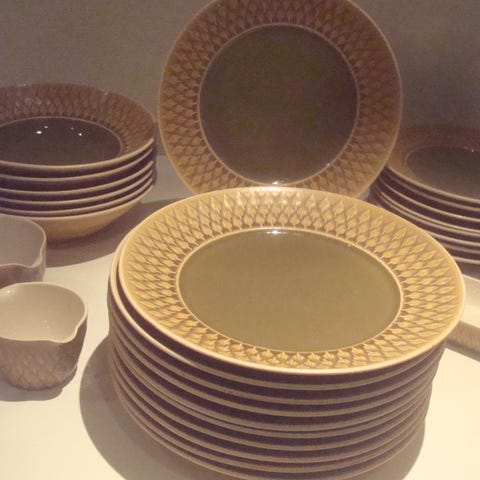 RELIEF STENTØJ, STOR GRYDE m/LÅG, 10 par kopper, MÆLKEKANDE M.M.