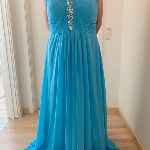 Smuk lyseblå gallakjole med tørklæde. Skal prøves, da den er så flot