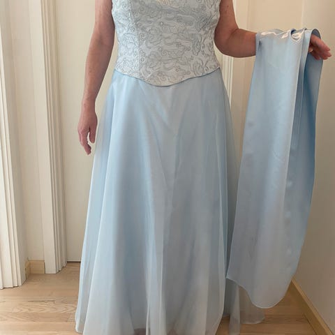 Smuk turkisblå gallakjole med sten. Passer L-XXL, den skal prøves, da den falder så flot