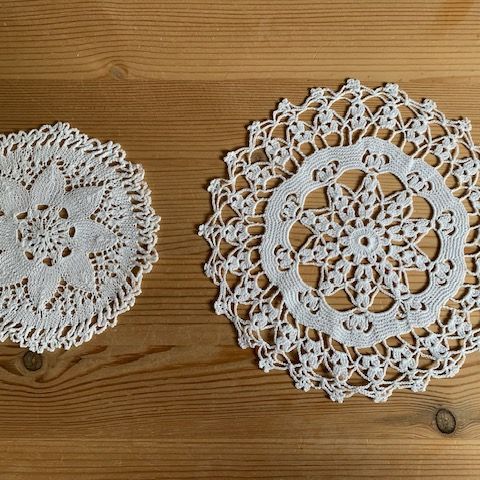 Flakoner, lyseduge, hæklede, øverste rk. ø14,5, ø11,5, ø 17