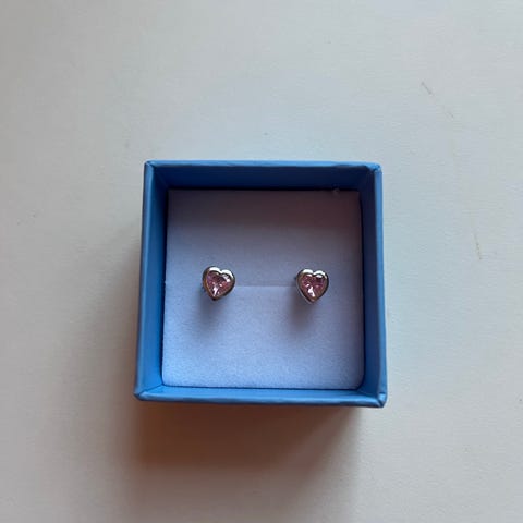 Søde hjerte ørestikkere fra ukendt mærke. Ægte sterling sølv 925. Syntetisk zirkonia. God tykkelse / kraftighed på øreringen. Brugt få gange, men fejler intet. Er pudset og renset i sølvrens.