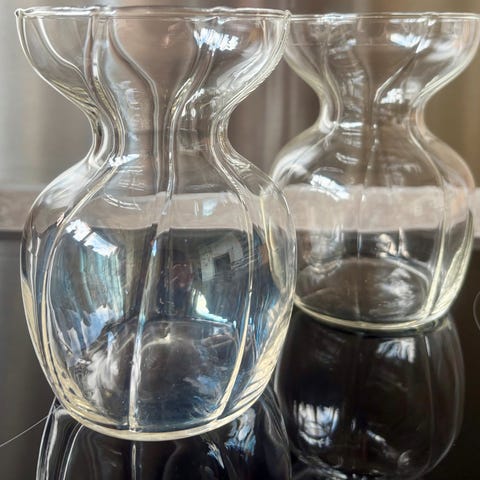 To smukke hyacinthglas i klart glas med snoet optik. Pris pr styk. Samlet 80,-